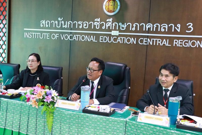 วันพุธที่ 3 ธันวาคม 2568 เวลา 09.00 น. สถาบันการอาชีวศึกษาภาคกลาง 2 นำโดยนายเรวัช ศรีแสงอ่อน ผู้อำนวยการสถาบันฯ ประธานคณะกรรมการประเมินคุณภาพการศึกษาภายในระดับปริญญาตรีสายเทคโนโลยีหรือสายปฏิบัติการ โดยหน่วยงานต้นสังกัด (ระดับสถาบัน) ประจำปี พ.ศ. 2568 พร้อมด้วย ดร.เชาวรัตน์ เตมียกุล รองผู้อำนวยการสถาบัน นางวรรณมาส สืบโถพงษ์ ผู้อำนวยการอาชีวศึกษาบันฑิต ดร.อัจฉรา ธูปบูชากร และนางพนา จันทร์ศิริ คณะกรรมการฯ ได้ดำเนินการประเมินคุณภาพการศึกษาภายในระดับปริญญาตรี ณ สถาบันการอาชีวศึกษาภาคกลาง 3 ในการนี้ คณะผู้บริหาร และเจ้าหน้าที่สถาบันการอาชีวศึกษาภาคกลาง 3 ให้การต้อนรับ