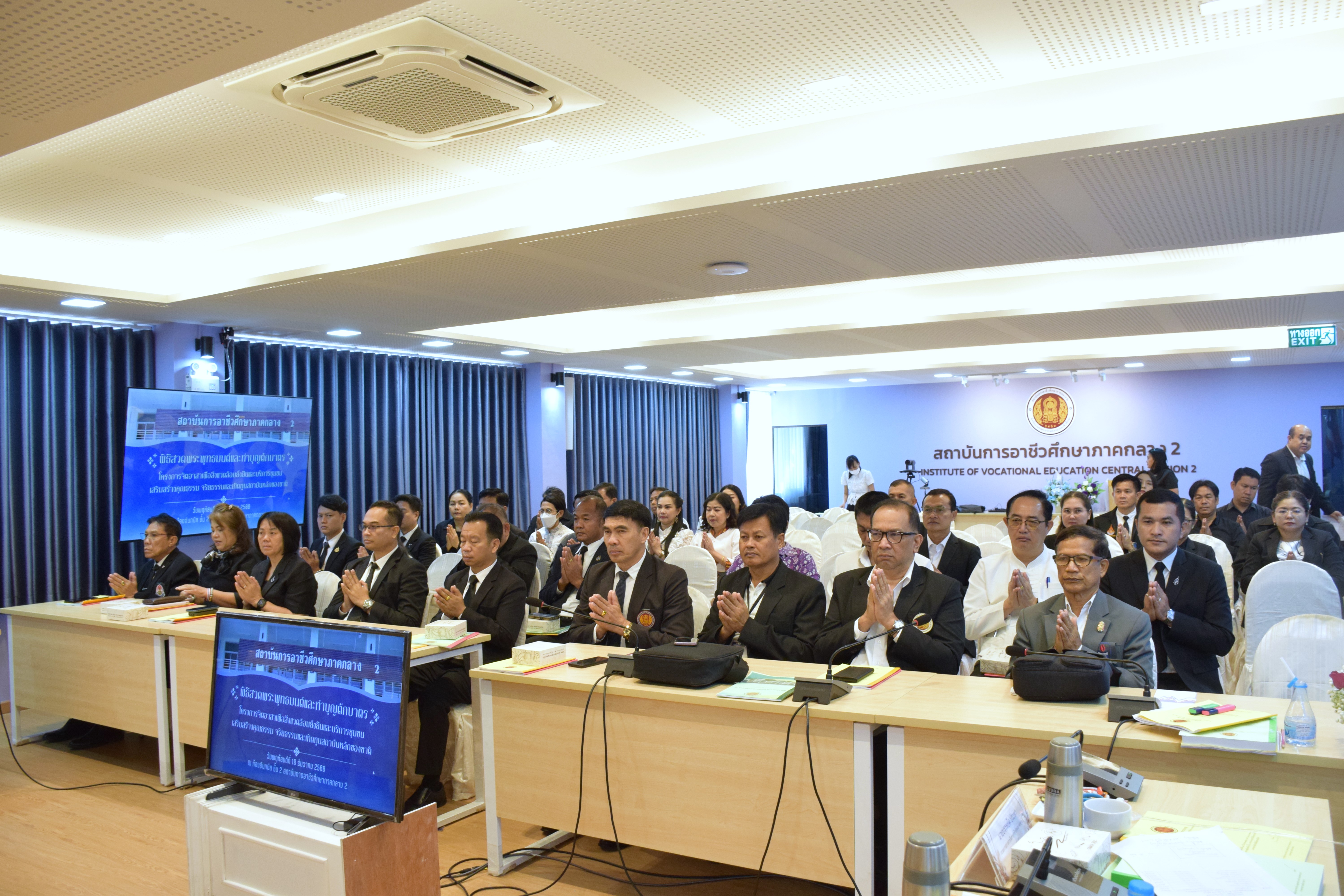 วันพฤหัสบดีที่ 18 ธันวาคม 2568 เวลา 07.30 น. สถาบันการอาชีวศึกษาภาคกลาง 2 จัดพิธีบำเพ็ญกุศลสวดพระพุทธมนต์และเจริญจิตตภาวนา อุทิศถวายเป็นพระราชกุศลแด่ สมเด็จพระนางเจ้าสิริกิติ์ พระบรมราชินีนาถ พระบรมราชชนนีพันปีหลวง โดยมี ดร.ชาญเวช บุญประเดิม นายกสภาสถาบันการอาชีวศึกษาภาคกลาง 2 เป็นประธานในพิธีฯ และมีคณะกรรมการสภาสถาบัน คณะอนุกรรมการบริหาร สถาบัน คณะอนุกรรมการวิชาการ คณะอนุกรรมการยุทธศาสตร์ฯ ผู้บริหารสถาบัน ผู้บริหารสถานศึกษาภาครัฐ 16 แห่ง ในพื้นที่ 4 จังหวัด (ชัยนาท ลพบุรี สิงห์บุรี อ่างทอง) และอาจารย์ประจำหลักสูตรระดับปริญญาตรี บุคลากรทางการศึกษา ร่วมพิธีเจริญพระพุทธมนต์ เพื่อถวายเป็นพระราชกุศล พร้อมถวายจตุปัจจัยไทยธรรม และภัตตาหารเช้าแด่พระสงฆ์ จำนวน 9 รูป และกรวดน้ำอุทิศถวายเป็นพระราชกุศล เพื่อแสดงความจงรักภักดี และสำนึกในพระมหากรุณาธิคุณ อันหาที่สุดมิได้ ณ ห้องประชุมอินทนิล สถาบันการอาชีวศึกษาภาคกลาง 2